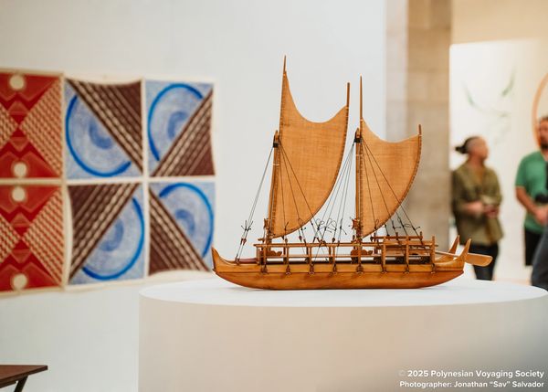Curated by Drew Kahuʻāina Broderick in conversation with representatives of the Polynesian Voyaging Society, the exhibition is organized by Puʻuhonua Society in collaboration with PVS, Inspiration Hawaiʻi Museum, Hawaiʻi State Foundation on Culture and the Arts, and the Teiger Foundation.